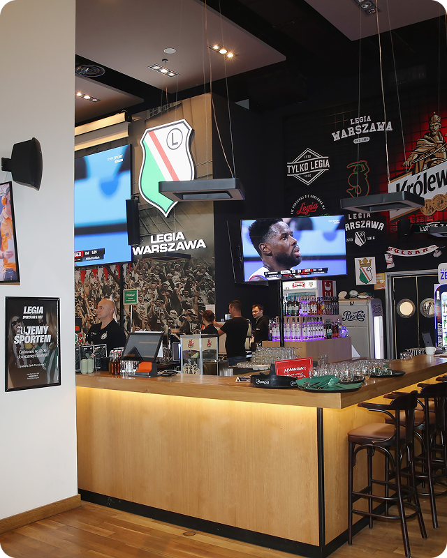 Świętuj sport każdego dnia w Legia Sports Bar & Rest. Zapraszamy na obiad z rodziną, biznesowy lunch albo wieczorne transmisje największych wydarzeń sportowych dla Ciebie i Twoich przyjaciół. Sprawdź nasze menu i przeżywaj emocje razem z innymi kibicami, bo sport najlepiej ogląda się w wyjątkowym towarzystwie. Legia Sports Bar & Rest to Twoja destynacja dla smaku i emocji.