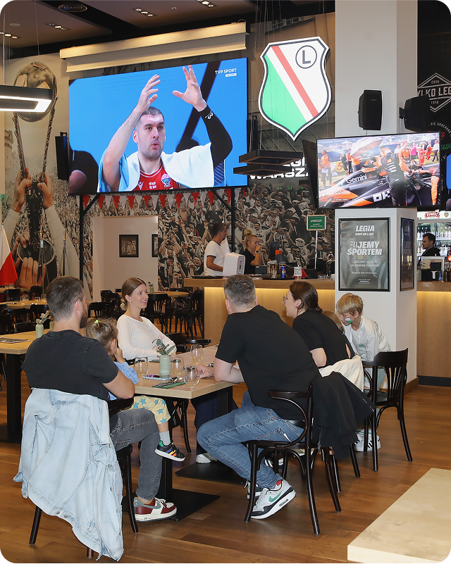 Dzięki temu Legia Sports Bar & Rest to nie tylko przestrzeń do kibicowania, ale również miejsce spotkań biznesowych, rodzinnych czy towarzyskich.